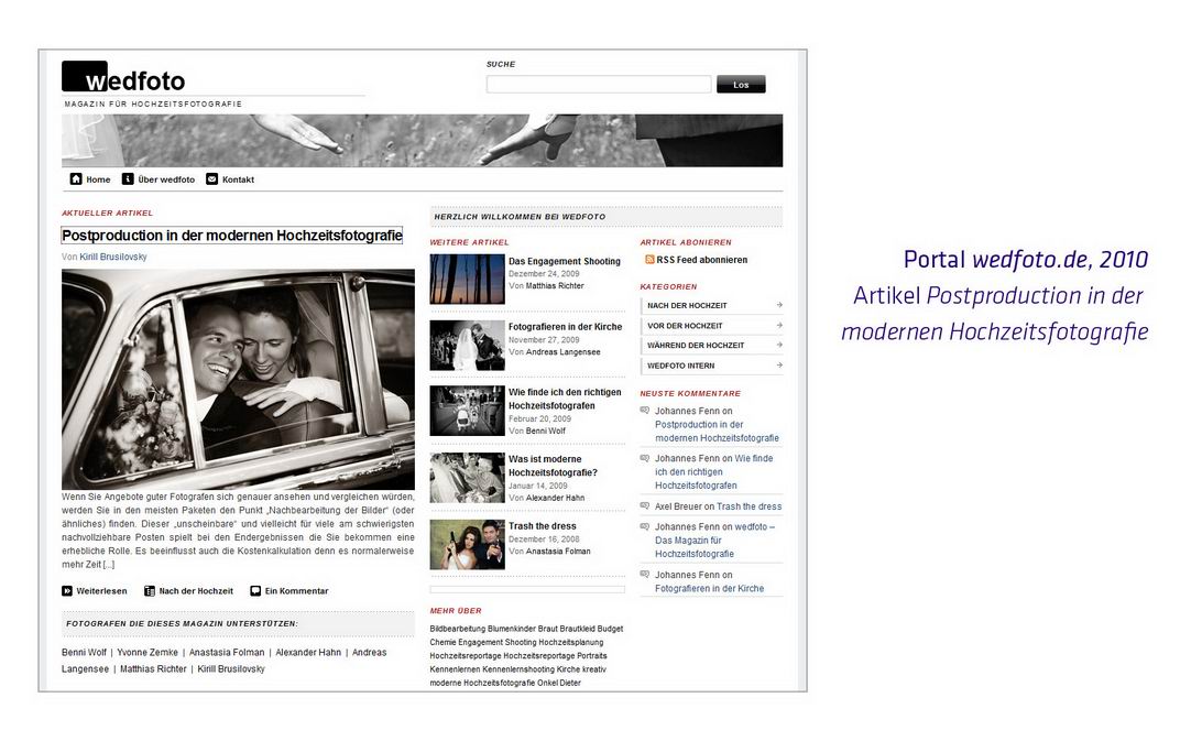My work was acknowledged not only by my clients, but also in several major German wedding magazines and international web portals. For many years I have been an active member of the Artistic Guild of the Wedding Photojournalist Association WPJA (2011 and 2016 I was there among their top international photographers worldwide), International Society of Professional Wedding Photographers (ISPWP), Best of Wedding Photography (BoWP) and other international wedding photographers’ organisations.